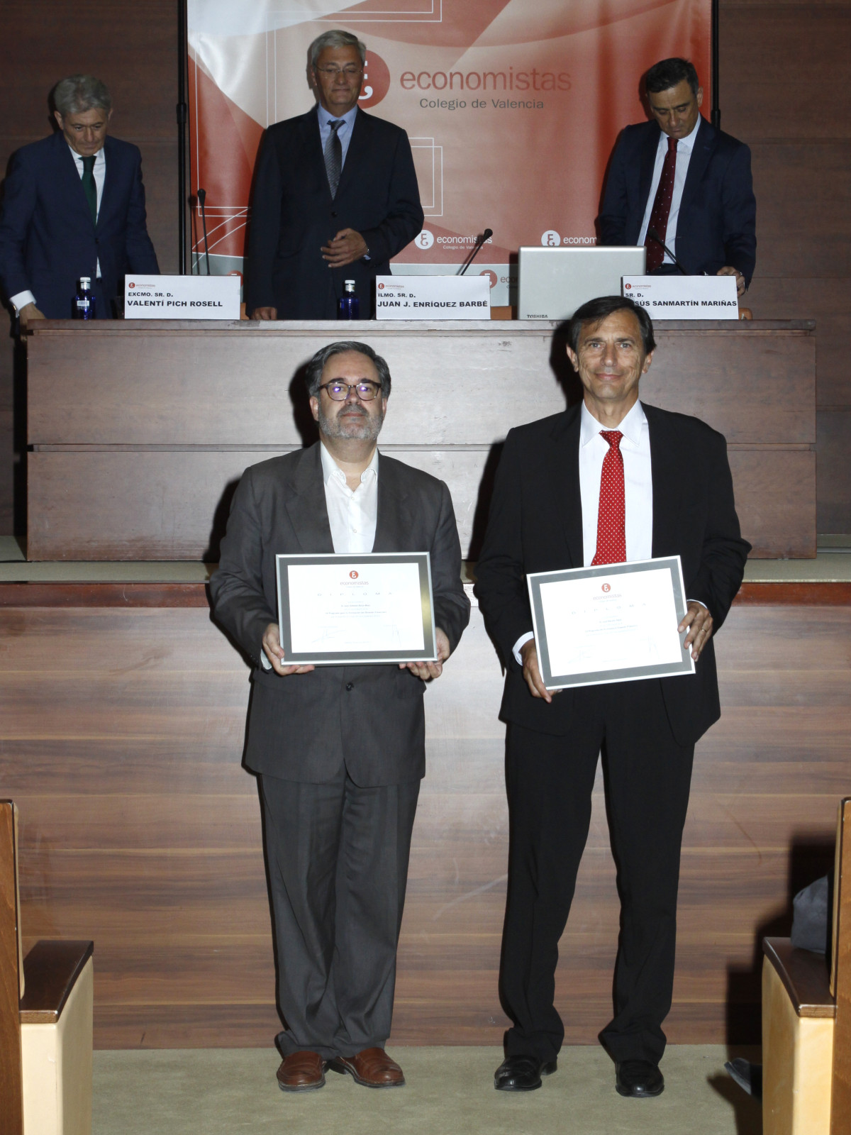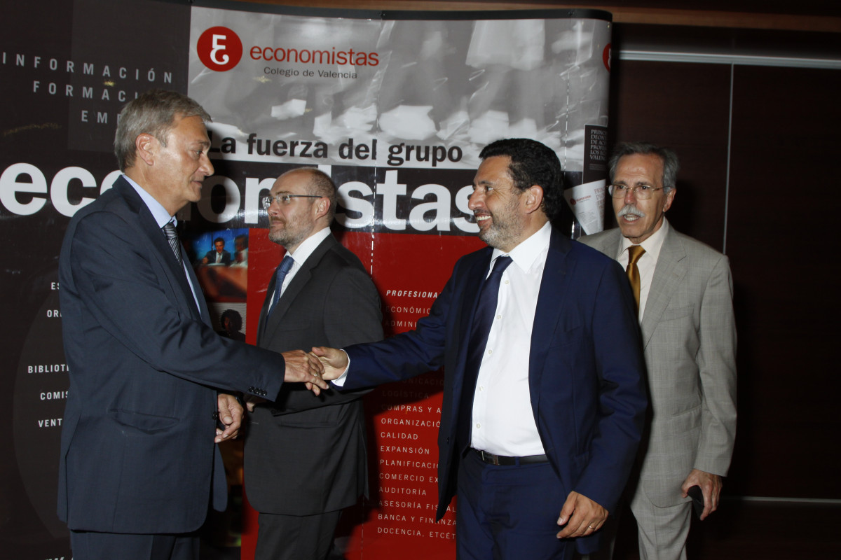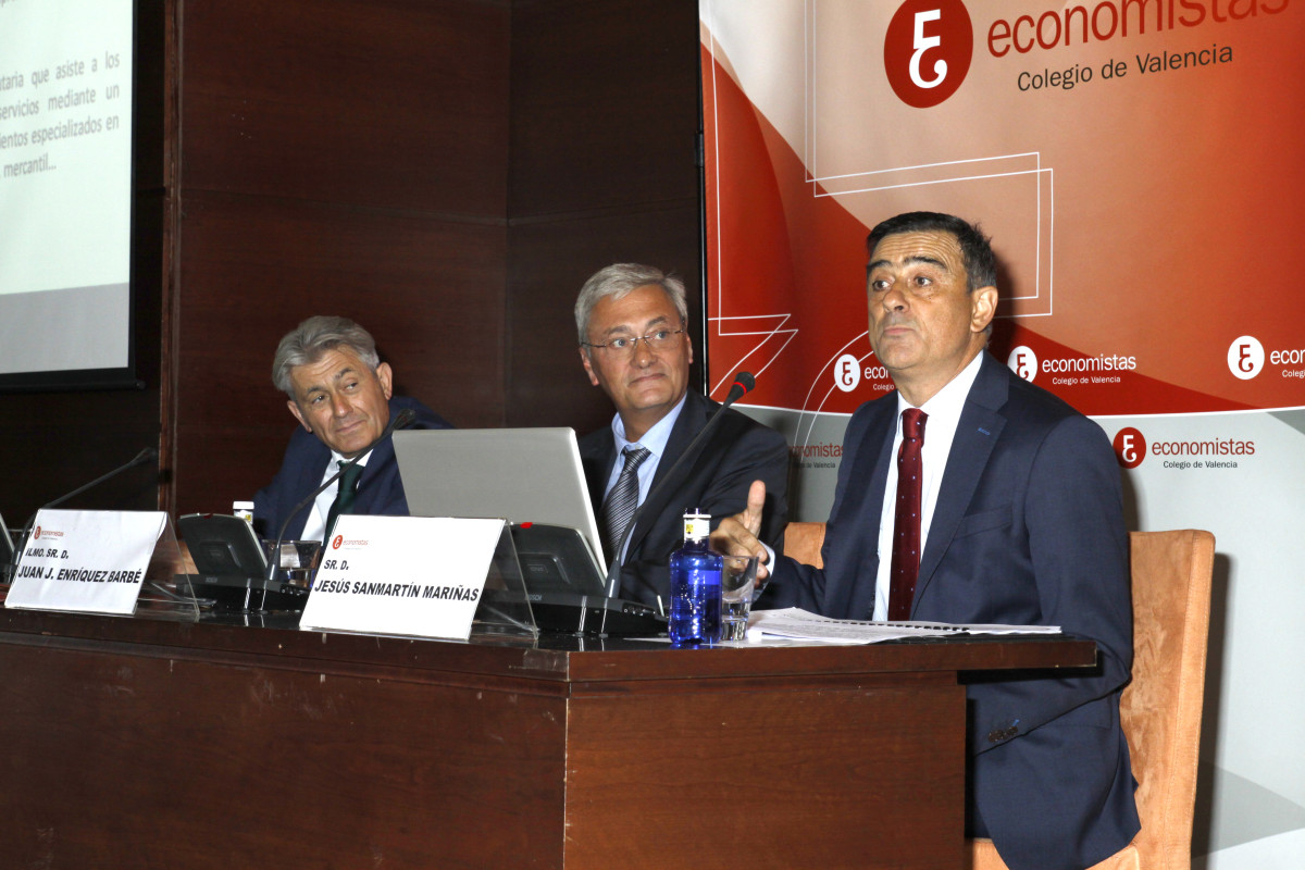 La ceremonia contó con la participación del decano del COEV, Juan José Enríquez; el presidente del Consejo General de Economistas, Valentí Pich; y el presidente del REAF, Jesús Sanmartín, quien pronunció la conferencia de clausura, titulada ‘Responsabilidad tributaria, civil y penal del economista’, con un estilo ameno y cercano que deleitó a los asistentes, ya que como él mismo apuntó, “el tema se las trae, así que vamos a tratar de no aburrir ni atemorizar a nadie”.